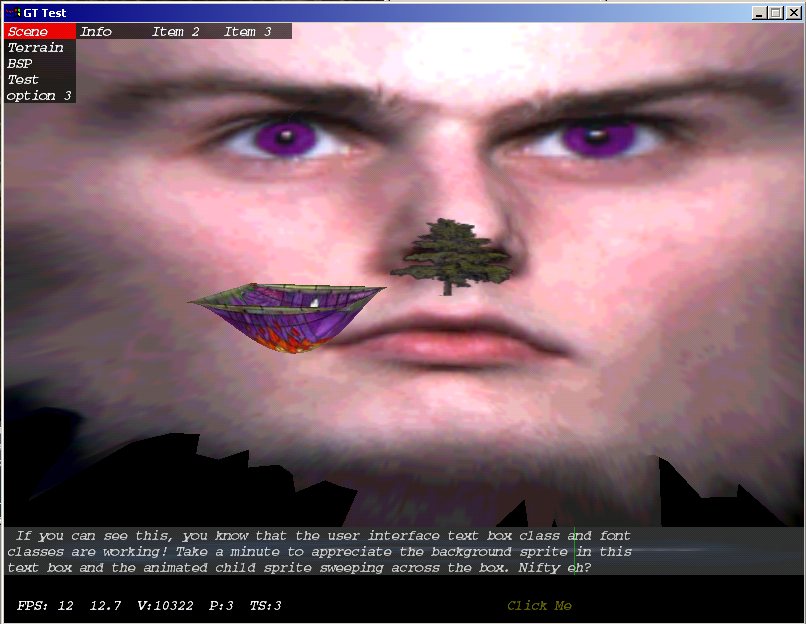 Here are some older screenshots. SS 1 is of a ROAM terrain with billboarded trees. SS 2 shows off primitive transparency.